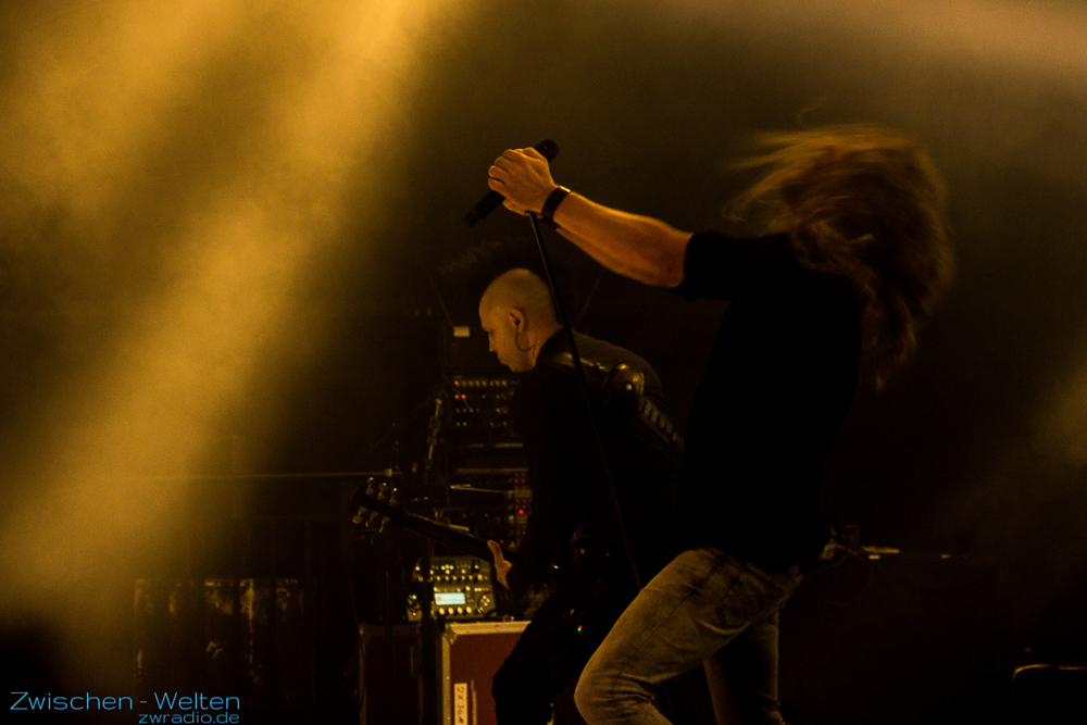 Nach dem zweiten Abgang formierte sich wieder ein eindeutiges, rhythmisches “Zugabe-Klatschen”. Doch diesmal erschienen nur die beiden Sänger. Sofort war klar – es wird Traumtänzer gespielt. Das Lied von Diary Of Dreams.