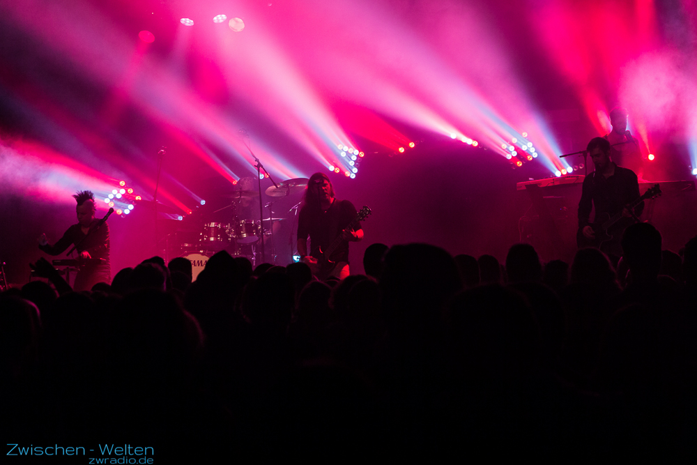 Als dann nach einer Umbaupause Diary Of Dreams auftraten, war der Unterschied fast mit Händen greifbar. Der Applaus war lauter, es wurde textsicher mitgesungen und auch noch in den hinteren Reihen getanzt.